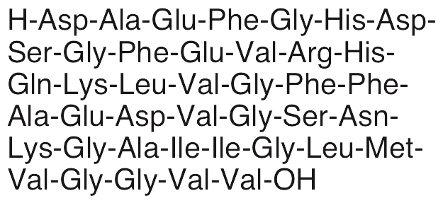 Amyloid-β (Aβ) is a peptide cleavage product of amyloid precursor protein (APP) that is often used as a biomarker in Alzheimer’s disease. Misfolded Aβ oligomers instigate conformation changes in other, normally folded Aβ oligomers, increasing the number of misfolded proteins and eventually forming neurotoxic plaques. These plaques impair cognitive performance in vivo. Aβ (1-42) is more fibrillogenic and more highly associated with Alzheimer’s disease than Aβ (1-40), although the shorter form is more common.