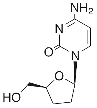 Zalcitabine, also known as 2’,3’-dideoxycytidine, is an antiviral pyrimidine nucleoside analog that is clinically used to treat HIV infection. Zalcitabine inhibits reverse transcriptase and prevents chain elongation when incorporated into viral DNA.