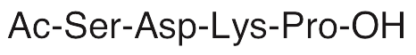 Ac-SKDP is a pro-angiogenic peptide degradation product of thymosin B4 that regulates hematopoiesis by inhibiting proliferation of hematopoietic pluripotent stem cells (spleen colony-forming units, or CFUs). This peptide exhibits cardioprotective, anti-inflammatory, and anti-fibrotic activities. In animal models of chronic myocardial infarction, Ac-SDKP improves left ventricular function, increases angiogenesis, and decreases infarct size. In hypertensive rats, Ac-SDKP prevents angiotensin II-induced increases in collagen synthesis and cross-linking as well as expression of LOX and TGF-β and activation of NF-κB and lymphocytic immune cells. In other animal models, this peptide prevents fibrosis, decreasing deposition of fibronectin and collagen and decreasing the number of myofibroblasts and macrophages. Ac-SDKP also exhibits nephroprotective activity, inhibiting progression of lupus nephritis in animal models; Ac-SDKP decreases proteinuria, infiltration of inflammatory T cells and macrophages, production of TNF-α, activation of NF-κB, and phosphorylation of Smad2/3, resulting in improvements in renal function.