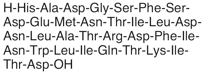 Glucagon-like peptide 2 (GLP-2) is a peptide hormone primarily synthesized in the intestine and pancreas. GLP-2 binds and activates the GLP-2 receptor, exhibiting vasodilatory, antihypertensive, antidepressant, and gastrointestinal motility modulating activities. In animal models, GLP-2 increases intestinal blood flow and decreases mean arterial blood pressure. GLP-2 potentiates L-type voltage-gated Ca2+ channels through a mechanism that involves activation of PKA. Additionally, GLP-2 decreases immobility time in animals undergoing the forced swim test. This peptide stimulates cell proliferation, inhibiting chemotherapy-induced mucosal atrophy in the intestines. GLP-2 also decreases gastric emptying and gastrointestinal motility.