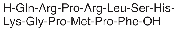 Apelin-13 is an endogenous peptide that exhibits neuroprotective and pro-angiogenic activities. Apelin-13 binds apelin receptors (APJ receptors) that heterodimerize with bradykinin receptors; upon binding, this complex signals for increases in phosphorylation of eNOS, activation of PKC, and cellular proliferation. Apelin-13 is also involved in the regulation of water balance, food intake, nociception, and cardiovascular responses. In vivo and in vitro, apelin-13 increases myocardial glucose uptake and GLUT4 membrane translocation in an AMPK-dependent manner. In animal models of ischemia/reperfusion, apelin-13 decreases neurological deficits, infarct volume, and brain edema, and also downregulates expression of Bax and caspase 3 through activation of the PI3K/Akt signaling pathway. Additionally, apelin-13 promotes proliferation, migration, and tube formation in myocardial microvascular endothelial cells.