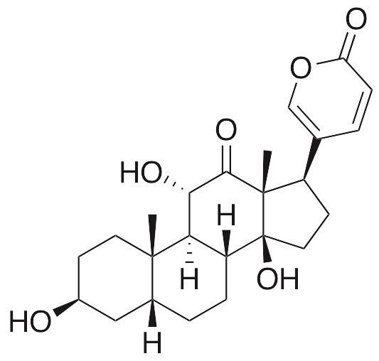 Arenobufagin is a bufanolide steroid found in the Argentine toad Bufo arenarum. This compound exhibits anticancer chemotherapeutic and anti-angiogenic properties, but is also cardiotoxic, inhibiting cardiovascular Na+/K+ pumps. In cellular models, arenobufagin induces autophagy and apoptosis, inhibiting tumor growth through indirect inhibition of the PI3K/Akt/mTOR signaling pathway. Arenobufagin also inhibits VEGFR2 directly through blockade of ATP-binding sites.