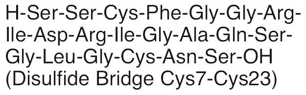 Atriopeptin I is an analog of atrial natriuretic peptide (ANP) that exhibits some vasodilatory/hypotensive activities, but is significantly less potent than ANP and other ANP analogs.