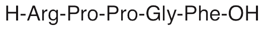 Bradykinin is a peptide that exhibits natriuretic, antioxidative, vasodilatory, and pro-angiogenic activities. Bradykinin stimulates bradykinin receptors and increases PLC activity, decreasing ENaC open probability, inhibiting distal nephron Na+ transport, and inducing natriuresis. In vitro, bradykinin decreases H2O2-induced senescence, increases activity of superoxide dismutase (SOD), and suppresses DNA damage, ROS production, and NADPH oxidase activity. Additionally, bradykinin increases expression of VEGF and promotes tube formation in prostate cancer cells.