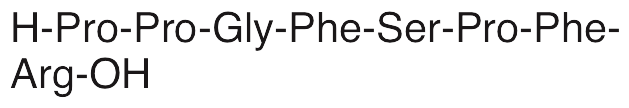 Bradykinin is a peptide that exhibits natriuretic, antioxidative, vasodilatory, and pro-angiogenic activities. Bradykinin stimulates bradykinin receptors and increases PLC activity, decreasing ENaC open probability, inhibiting distal nephron Na+ transport, and inducing natriuresis. In vitro, bradykinin decreases H2O2-induced senescence, increases activity of superoxide dismutase (SOD), and suppresses DNA damage, ROS production, and NADPH oxidase activity. Additionally, bradykinin increases expression of VEGF and promotes tube formation in prostate cancer cells.