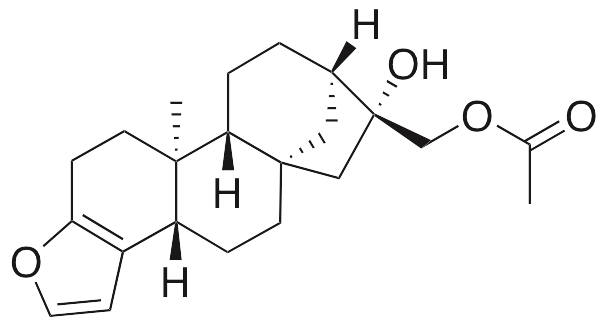 Cafestol is a diterpene initially found in brewed, unfiltered coffee that exhibits anti-angiogenic, anticancer, chemopreventive, neuromodulatory, anti-inflammatory, and hyperlipidemic activities. Cafestol inhibits proliferation, migration, and tube formation in vitro, potentially through decreasing phosphorylation of FAK and Akt. In renal carcinoma cells, cafestol induces G1 phase cell cycle arrest and apoptosis, decreases the mitochondrial membrane potential, increases activation of caspase 3, downregulates expression of Bcl-2, Bcl-cl, Mcl-1, and FLIP, suppresses Akt pathway signaling, and inhibits cellular proliferation. In other cellular models, cafestol decreases aflatoxin B1-induced DNA adduct formation and increases levels of glutathione-S-transferase. Additionally, cafestol activates Nrf2 and displays protective benefit in models of Parkinson’s disease. In LPS-stimulated macrophages, this compound inhibits ERK2 and MEK1 and decreases production of COX-2 and prostaglandin E2 (PGE2). In vivo, cafestol upregulates expression of genes involved in cholesterol homeostasis by acting as an agonist at the farnesoid X receptor (FXR) and pregnane X receptor (PXR).