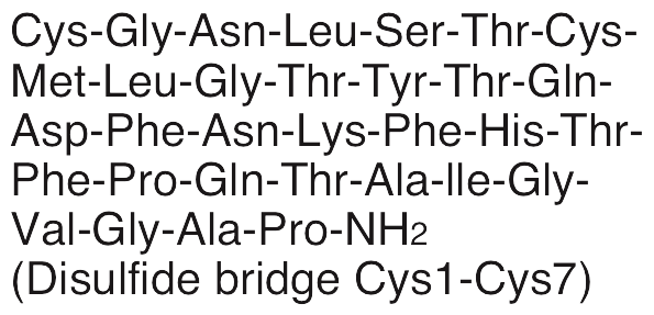 Calcitonin is an endogenous neuropeptide that exhibits pro-oncogenic, anti-osteoarthritic, and anti-resorptive activities. Calcitonin induces activation of NF-κB, upregulating expression and activity of fibronectin, MMP-1, MMP-2, and MMP-9 and increasing cell growth in osteosarcoma cells. When administered clinically, calcitonin increases serum NO and urinary CTX-II levels, improving medial femoral condyle osteoarthritis. Calcitonin also inhibits SCDP-induced apoptosis of osteoclasts and increases bone formation and volume.