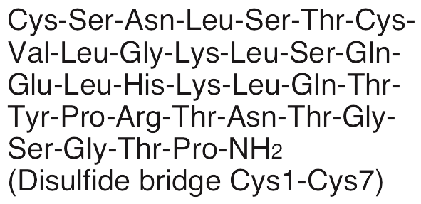 H-Cys-Ser-Asn-Leu-Ser-Thr-Cys-Val-Leu-Gly-Lys- Leu-Ser-Gln-Glu-Leu-His-Lys-Leu-Gln-Thr-Tyr-Pro-Arg-Thr-Asn-Thr-Gly-Ser-Gly-Thr-Pro-NH2
