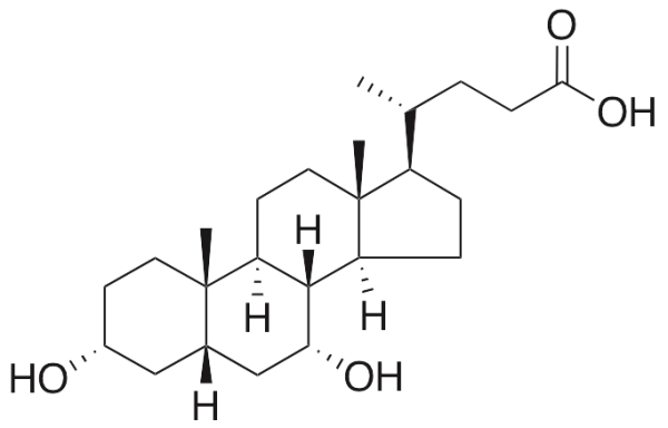 Chenodeoxycholic acid is an endogenous bile acid synthesized by the liver; it acts as an agonist at the farnesoid X receptor (FXR). Chenodeoxycholic acid exhibits anticancer and gastrointestinal motility modulating activities. This compound treats chronic constipation and displays protective benefit against NSAID-induced gastrointestinal injury. Chenodeoxycholic acid also induces apoptosis, decreases PKC activity, and inhibits growth of ovarian cancer cells.