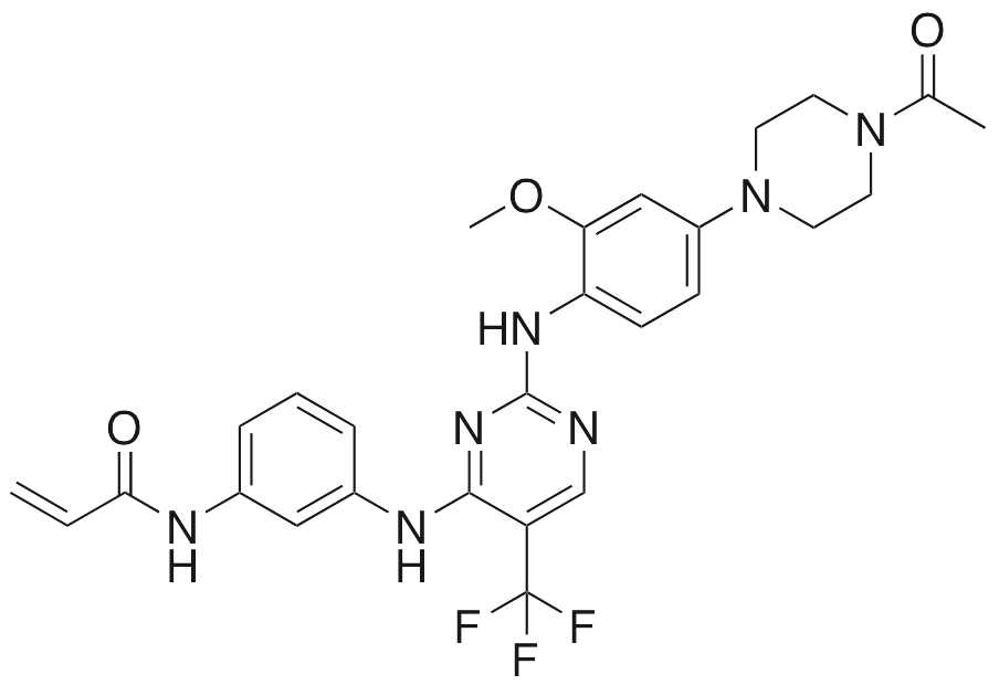CO-1686 is an inhibitor of mutant forms of EGFR, including T790M EGFR. CO-1686 exhibits anticancer chemotherapeutic activity, inducing tumor regression in animal models of non-small cell lung cancer (NSCLC) and sensitizing cancer cells in vitro to other chemotherapeutics.