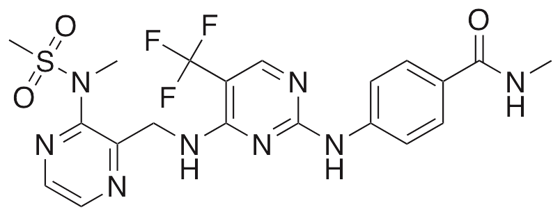 | IUPAC Name | N-methyl-4-[[4-[[3-[methyl(methylsulfonyl)amino]pyrazin-2-yl]methylamino]-5-(trifluoromethyl)pyrimidin-2-yl]amino]benzamide |