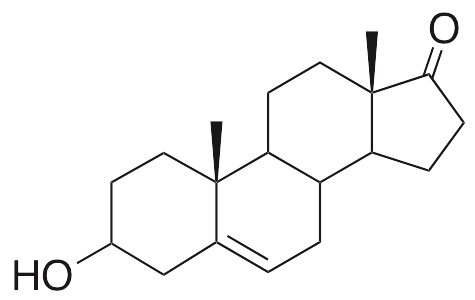 Dehydroepiandrosterone (DHEA) is an endogenous steroid hormone produced in the adrenal glands, gonads, and brain; it is an intermediate in the synthesis of estrogens and androgens. DHEA exhibits neuroprotective, cognition enhancing, anti-androgenic, anticancer, anti-metastatic, antiepileptic/anticonvulsant, anti-asthma, antacid, and anti-ulcerative activities. DHEA enhances working memory and cognition in clinical settings. DHEA acts as a partial agonist at androgen receptors and ERα receptors, as a full agonist at ERβ receptors, NMDA receptors, and σ1 receptors, and an antagonist at GABA-A receptors. Additionally, DHEA binds PPARα, pregnane X receptors (PXRs), and CXRs. In cellular models of cervical cancer, DHEA inhibits cell proliferation, migration, and adhesion. This compound’s antiepileptic activity potentially occurs through increasing expression of various glutamate transporters. In bronchial epithelial cells, DHEA inhibits the epithelial-to-mesenchymal transition (EMT), decreases levels of α-SMA, and increases levels 0f E-cadherin; it also displays bronchodilatory benefit in vivo. In other animal models, this compound decreases gastric acid secretion, lipid peroxidation, and ulcer formation.