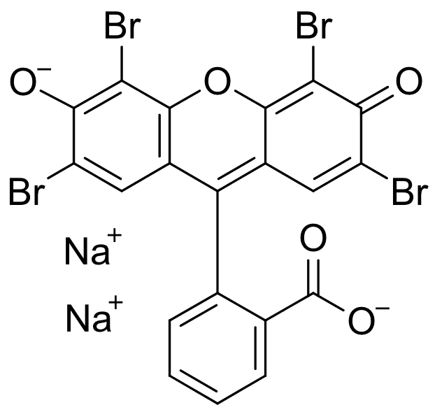 Eosin Y disodium is a tetrabromofluorescein yellow-red dye from the xanthene family that gives green fluorescence. This dye has commonly found use as a biological stain, and can also be used in determining many basic drugs by forming complexes with the acidic carboxyl group. Eosin Y has also been used in producing devices, such as electrodes, modified to facilitate electron transfer efficiency, to evaluate toxicity of 2,4-dichlorophenol to HepG2 cells. Quite interestingly, Eosin Y has demonstrated effective use as a structure directing agent in the production of flexible dye-sensitized solar cells. Eosin Y has also found use as a catalyst in the organic synthesis of tetrahydroquinolines. Non-selectively inhibits protein methyltransferase (PRMT).