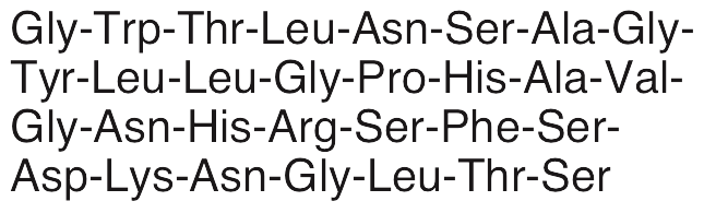 Galanin is an endogenous neuropeptide that binds GAL receptors and is involved in action potential signaling and propagation in neurons. Galanin exhibits anticonvulsant/antiepileptic activity, inhibiting glutamate and suppressing seizures. Galanin also inhibits insulin secretion and plays a role in nociception, sleep regulation, cognition, feeding, blood pressure, and mood. Galanin displays both neuroprotective and neurotoxic activities, as galanin expression is increased in the brain tissue of Alzheimer’s disease patients; it is also involved in modulation of cholinergic signaling.