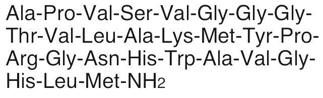 Gastrin-releasing peptide (BB2) is an endogenous bombesin-like peptide that stimulates the release of gastrin by binding BB2 receptors; it is involved in feeding behavior (acting as an anorexigenic), circadian rhythms, and stress signaling. BB2 induces scratching behavior in vivo and exhibits pro-angiogenic activity in cancer models, inducing expression of IL-8 in a hepatocyte growth factor-dependent manner in gastric cancer cells.