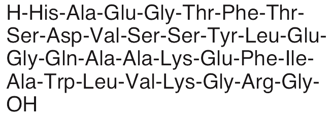 Glucagon-like peptide 1 (GLP-1) is an endogenous peptide hormone that binds GLP-1 receptors, increasing cAMP and insulin secretion. GLP-1 primarily exhibits anorexigenic, anti-diabetic, and gastrointestinal modulatory activities. GLP-1 decreases food intake and glucagon levels in animal models and also slows gastric emptying. In subjects with type 2 diabetes, the response of GLP-1 to glucose is impaired and subjects show abnormally low levels of GLPs.