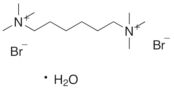 Hexamethonium bromide is a non-depolarizing neuromuscular junction (NMJ) blocker that acts as an antagonist at pre-ganglionic nicotinic acetylcholine receptors (nAChRs). Hexamethonium bromide was previously used to treat hypertension as an inhibitor of sympathetic nervous system activity but is no longer clinically used.