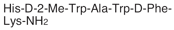Hexarelin is a synthetic analog of ghrelin that binds and activates the ghrelin (GHS) receptor. Hexarelin exhibits cardioprotective, anti-fibrotic, antihypertensive, and anti-fertility activities. In animal models of myocardial infarction, hexarelin protects cardiac function. In spontaneously hypertensive rats, hexarelin prevents deposition of collagen, decreases expression of TIMP-1, collagen I, and collagen III, and increases expression of MMP2 and MMP9, decreasing cardiac fibrosis and blood pressure and attenuating left ventricular hypertrophy. Hexarelin also decreases ovulation and number of offspring produced in vivo.