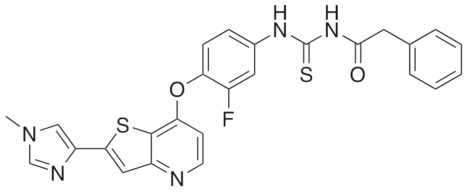 | Chemical Name | N-[[3-fluoro-4-[2-(1-methylimidazol-4-yl)thieno[3,2-b]pyridin-7-yl]oxyphenyl]carbamothioyl]-2-phenylacetamide |
