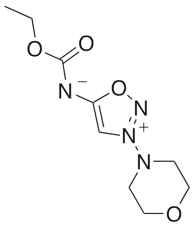 Molsidomine is a NO donor that exhibits vasodilatory, cardioprotective, anti-atherosclerotic, and anticoagulant activities. Molsidomine inhibits PDGF-induced smooth muscle cell migration and proliferation and suppresses carotid artery neointima formation in vivo by inhibiting activity of annexin A2. In vitro, molsidomine inhibits activated platelet adhesion.