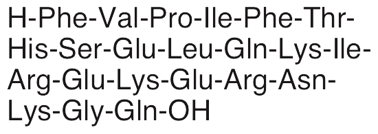 Motilin is an endogenous ghrelin-related gut peptide that modulates gastrointestinal motility and is released during fasting. Motilin binds the motilin receptor, activating cholinergic signaling that induces contractions in intestinal muscle. In preadipocytes, motilin increases lipogenesis and expression of PPARγ and Cav3, stimulating mitochondrial activity and proliferation; in mature adipocytes, this peptide increases expression of PPARγ, CEBP-β, and DGAT1 and increases uptake of fatty acids and glucose. Additionally, motilin exhibits anxiolytic activity in vivo, potentially through facilitation of GABAergic neurotransmission in the amygdala.