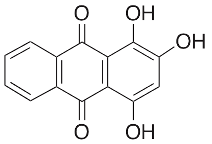 Purpurin is an anthraquinone found in madder root that is occasionally used as a pigment dye. Purpurin also exhibits anti-angiogenic, antifungal, antibiotic, and antioxidative activities. In vivo and in vitro, purpurin suppresses VEGF-induced cell invasion and tube formation by inhibiting adipocyte-derived leucine aminopeptidase. In other cellular models, purpurin acts as a radical scavenger. This compound inhibits growth of Candida by inducing apoptosis. Additionally, purpurin displays antibacterial activity against gram positive and gram negative bacteria by inhibiting O-acetylpeptidoglycan esterase.