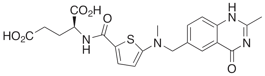Raltitrexed is a quinazoline analog of folate. Raltitrexed acts as an antifolate anticancer chemotherapeutic, inhibiting thymidylate synthase. Raltitrexed disrupts DNA synthesis and induces strand breaks. This compound is approved in some countries for the treatment of advanced colorectal cancer.