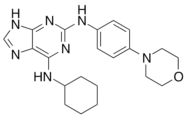 Reversine is a purine analog that reverses or induces differentiation. Reversine displays anticancer chemotherapeutic and anti-metastatic activities; it transforms preadipocytes into mesenchymal stem cells, induces autophagy in thyroid cancer cells, and downregulates expression of miR-133a miRNA. This compound induces apoptosis and cell death in breast cancer cells. In animal models of cancer, reversine inhibits focal adhesion disassembly, decreases cell motility and invasion, and prevents tumor metastasis.
