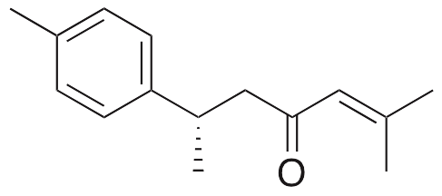 Aromatic turmerone is a sesquiterpene found in Curcuma (turmeric). This compound exhibits anti-inflammatory, anticonvulsant, antifungal, anticancer, and anti-metastatic activities. Aromatic turmerone suppresses production of IL-2 and IFN-γ in T cells. In animal models of chemically-induced seizures, aromatic turmerone limits epileptic activity. Additionally, turmerone also inhibits growth of dermatophytes in various models. In breast cancer cells, this compound decreases phosphorylation of NF-κB, PI3K, and Akt and suppresses signaling of ERK1/2, inhibiting cellular migration and invasion. In other models, aromatic turmerone does not inhibit tumor growth but does suppress the development of lymphocytic leukemia in improving T and B lymphocyte proliferation. Like other compounds derived from turmeric, aromatic turmerone may indirectly inhibit EGFR.