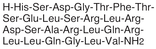 Secretin is an endogenous peptide hormone involved in digestion and feeding behavior; it binds to its own GPCR secretin receptor. In adipocytes, secretin stimulates lipolysis, mediated by PKA and hormone-sensitive lipase (HSL) signaling; it also induces uptake of fatty acids and secretion of MCP-1 and adiponectin. Secretin enhances ambulation distance but not exploratory activity in animal models of repetitive hyperactivity. Additionally, secretin increases expression of tyrosine hydroxylase, stimulating catecholamine secretion in PC12 neurons.