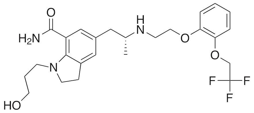 Silodosin is a selective α1A-adrenergic receptor antagonist clinically used to treat benign prostatic hyperplasia/low urinary tract syndrome (BPH/LUTS). Silodosin improves bladder function and blood flow in ischemic conditions in animal models. Additionally, silodosin alters transcriptional regulation through its effect on α-adrenergic receptors, preventing NE-induced inhibition of EIk1 and SRF in the prostate.