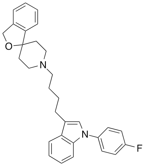 Siramesine is an indole derivative that acts as an agonist at σ2 receptors, exhibiting anticancer, antidepressant, and anxiolytic activities. Siramesine decreases the mitochondrial membrane potential, increases cytochrome c release, and induces apoptosis and cell death in various cancer cell lines. In mast cells, this compound induces apoptosis by destabilizing lysozymes. Siramesine also normalizes sucrose intake in animal models of chronic stress and increases exploratory behavior and social interaction time in animal models of anxiety.