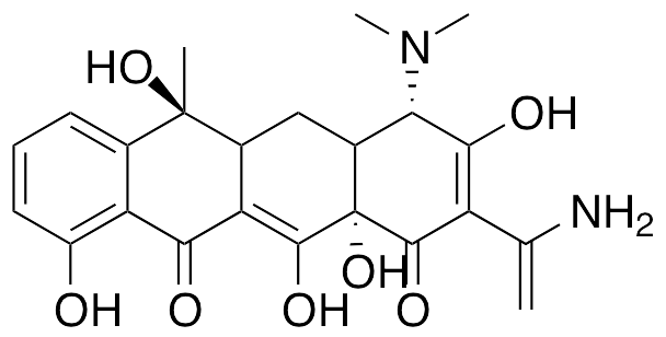 Tetracycline is a polyketide antibiotic originally produced by Streptomyces that exhibits antibacterial and neuroprotective activities. Tetracycline binds the 30S subunit of the bacterial ribosome, preventing aminoacyl-tRNA from binding to the ribosomal A site and inhibiting protein synthesis. Tetracycline is clinically used to treat acne, rosacea, Lyme disease, and various bacterial infections. Tetracycline binds amyloid-β (Aβ) peptides, increasing their solubility and decreasing their neurotoxicity in vitro. Tetracycline may also inhibit matrix metalloproteinases (MMPs). Additionally, tetracycline inhibits mammalian RNA splicing.