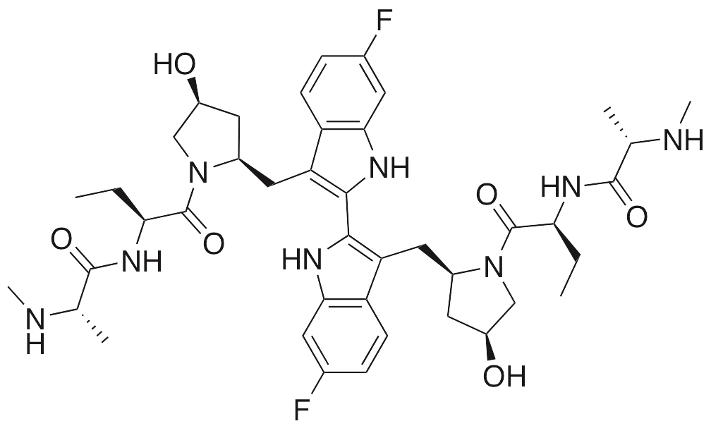 TL-32711 is a Smac mimetic that is currently in clinical trials as a potential treatment for a variety of cancers. TL-32711 inhibits members of the inhibitor of apoptosis protein (IAP) family proteins, inducing degradation of cIAP1 and cIAP2. TL-32711 exhibits anticancer chemotherapeutic activity, inhibiting NF-κB activation and tumor growth in animal models. In acute myelogenous leukemia (AML) cells, this compound induces caspase 8-mediated apoptosis. This compound also improves the efficacy of co-administered antivirals in models of hepatitis B infection.