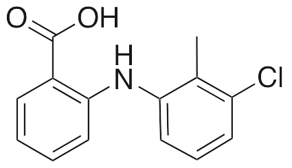 Tolfenamic acid is a non-steroidal anti-inflammatory drug (NSAID) that exhibits anti-inflammatory, analgesic, and anticancer chemotherapeutic activities; it inhibits COX-1 and COX-2. Tolfenamic acid inhibits leukotriene B4 (LTB4) production, degranulation, and migration in polymorphonuclear leukocytes. Tolfenamic acid also downregulates expression of cyclin D1, increases ER stress, and induces apoptosis in colorectal cancer cells, inhibiting tumor growth in vivo. Additionally, tolfenamic acid also decreases expression of VEGF, VEGFR1, HGFR/c-MET, survivin, Bcl-2, and Sp proteins in cellular models of colorectal cancer.