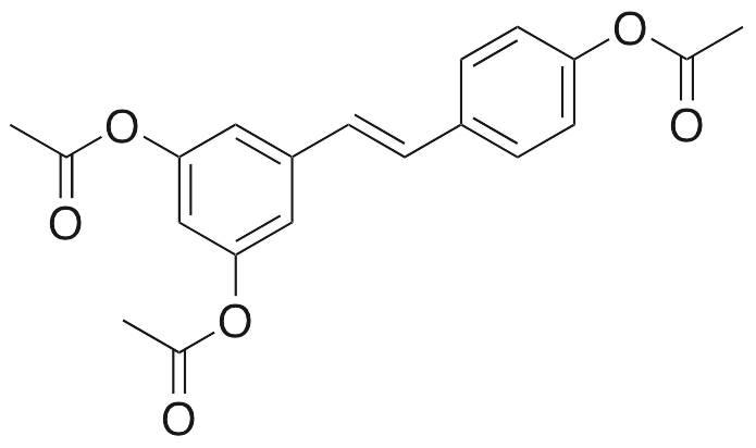 Triacetyl resveratrol is a resveratrol prodrug designed to improve bioavailability of the parent compound. Triacetyl resveratrol displays a wide variety of anticancer and chemopreventive activities. In an in vitro model of prostate cancer, this compound activated p53, increased levels of p21 and p53R2, and decreased prostate-specific antigen expression, inhibiting cell cycle progression at the G1/S phase in p53-mutated cells and at the SG2/M phase in p53 null cells. In breast cancer cells, triacetyl resveratrol interacted with integrin αvβ3 and induced phosphorylation of ERK and p38, regulating gene expression and proliferation.