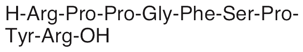 Bradykinin is a peptide that exhibits natriuretic, antioxidative, vasodilatory, and pro-angiogenic activities. Bradykinin stimulates bradykinin receptors and increases PLC activity, decreasing ENaC open probability, inhibiting distal nephron Na+ transport, and inducing natriuresis. In vitro, bradykinin decreases H2O2-induced senescence, increases activity of superoxide dismutase (SOD), and suppresses DNA damage, ROS production, and NADPH oxidase activity. Additionally, bradykinin increases expression of VEGF and promotes tube formation in prostate cancer cells.