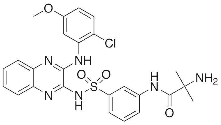 XL-147 is an inhibitor of PI3K that is currently in clinical trials as a potential treatment for cancers with solid tumors. XL-147 exhibits anticancer chemotherapeutic properties, inhibiting tumor growth in animal models of acute lymphocytic leukemia (ALL). XL-147 is a dual inhibitor of PI3K and mTOR. It exhibits higher efficacy than either sole PI3K or mTOR inhibition in models of prostate cancer.