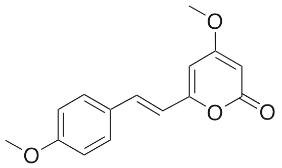 Yangonin is a dienolide kavalactone originally found in Piper methysticum (kava plant). Yangonin exhibits neuroprotective, neuromodulatory, and antifungal activities. Yangonin activates cannabinoid (CB1) receptors and potentiates the effects of GABA-A receptors. Additionally, yangonin also activates Nrf2 in neurons and astroglia, protecting against amyloid-β (Aβ)-induced neurotoxicity. This compound displays antimicrobial efficacy against species of Fusarium, Trichoderma, and Colletotrichum.